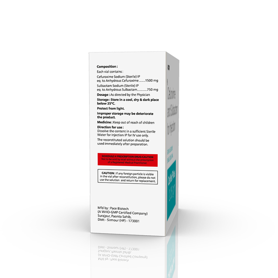 Composition : Cefuroxime Sodium 1500 mg & Sulbactam 750 mg