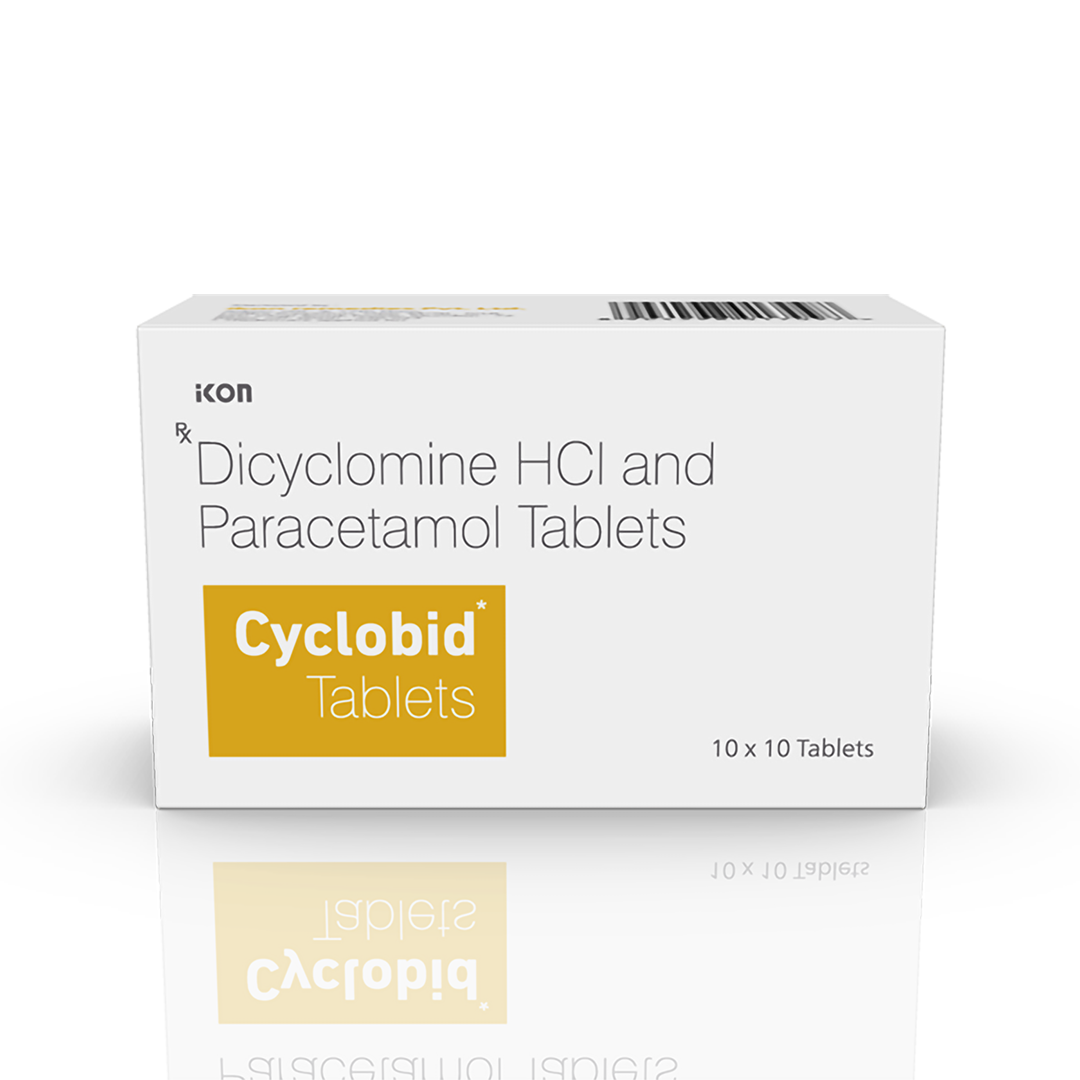 Dicyclomine + Paracetamol is a combination of two medicines: dicyclomine and paracetamol, which relieves abdominal pain and cramps. Dicyclomine is an anti-cholinergic which relaxes the muscles in the stomach and gut (intestine). It stops sudden muscle contractions (spasms), thereby relieving cramps, pain, bloating, and discomfort. Paracetamol is an analgesic (pain reliever) which works by blocking the release of certain chemical messengers that cause pain.