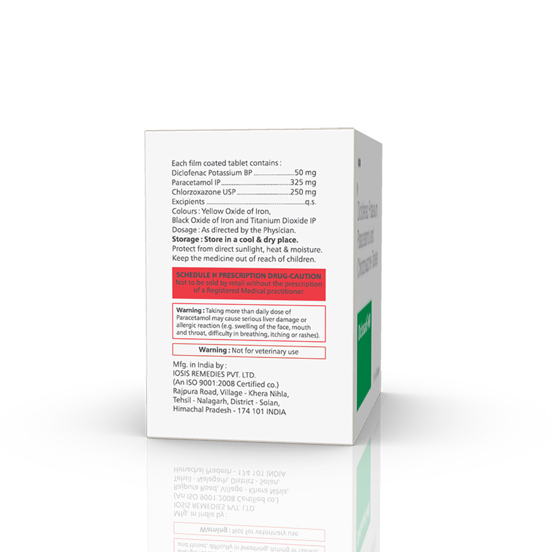 Composition : Diclofenac 50 mg, Paracetamol 325 mg & Chlorzoxazone 250 mg