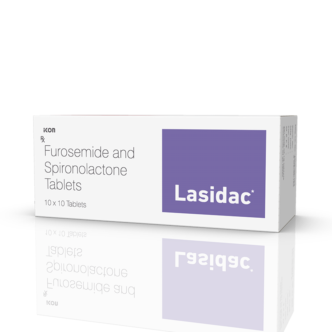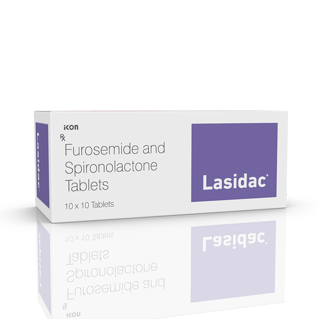 Lasidac Tablets is used for used in the treatment of congestive heart failure, nephrotic syndrome, ascites associated with liver cirrhosis, and mild and moderate degrees of essential hypertension. It works by reducing the excess fluid levels in the body while maintaining the potassium balance.