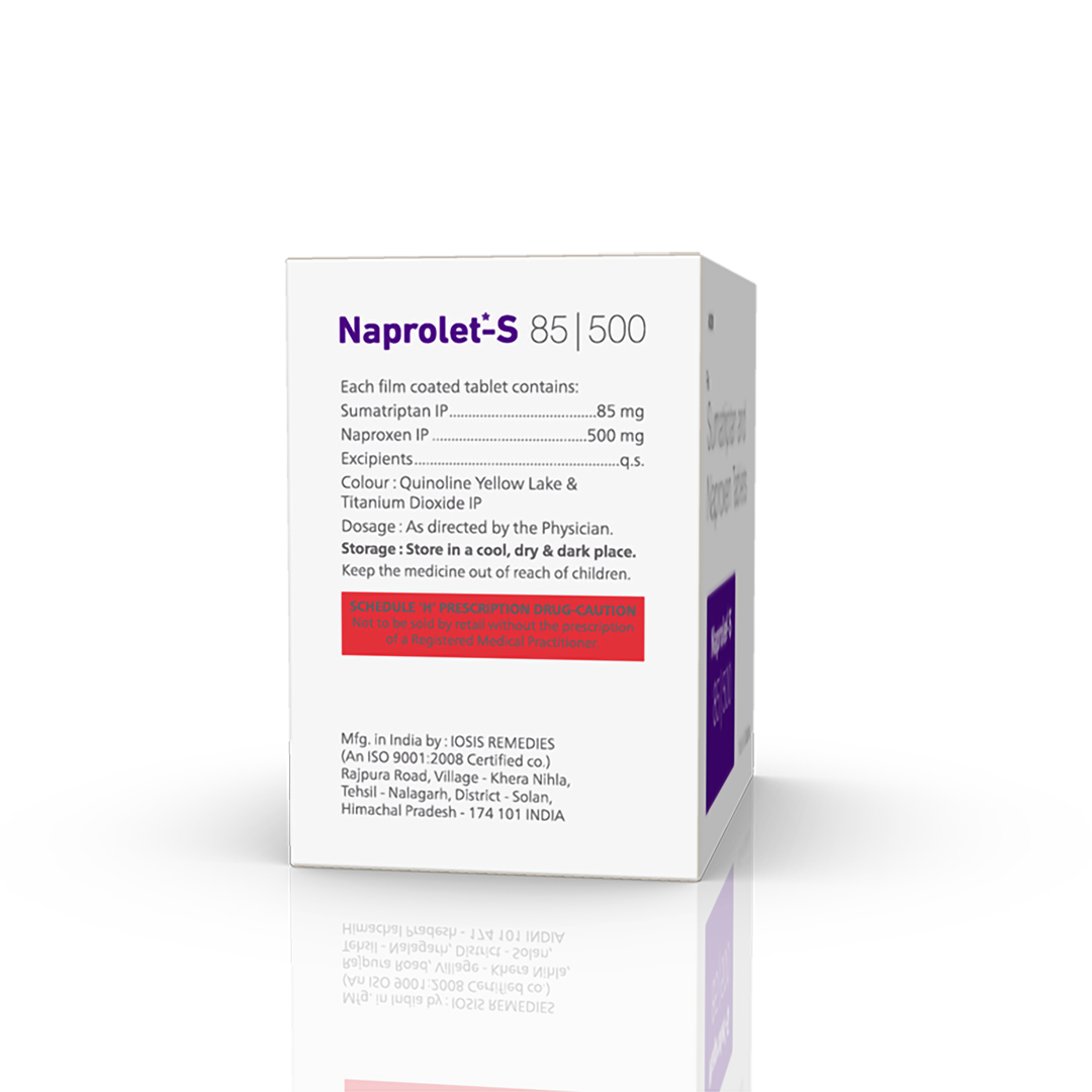 Naprolet-S 85 | 500 Tablets is a combination of two medicines used in the treatment of migraine. It relieves the symptoms of migraines and prevents the attack from becoming worse. This medicine helps by narrowing the blood vessels, thereby relieving migraine headaches.