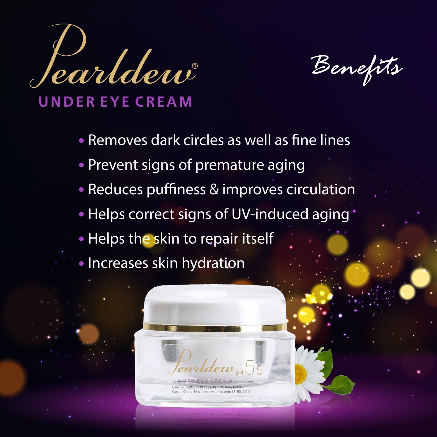 Additionally, Pearldew Under Eye Cream gives a soothing effect and cools your under-eye area for better blood circulation and reduction of dark circles. It reduces wrinkle depth, wrinkle volume, and roughness, which gives a tightening and soothing effect and counteracts free radicals responsible for premature skin aging. It targets & corrects visible & invisible aging factors, making your skin look smoother, spotless, and younger. The rich, fast-absorbing, light-weight & restorative properties of Pearldew Under Eye Cream awaken your eyes to a visibly replenished look. Regular use of this potent under-eye cream will banish dark circles, under-eye bags & puffiness.
