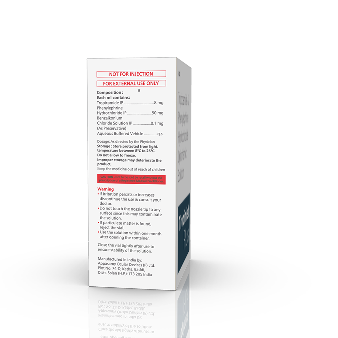 Composition : Tropicamide 0.8%, Phenylepherine 5% & Chlorbutol 0.5%